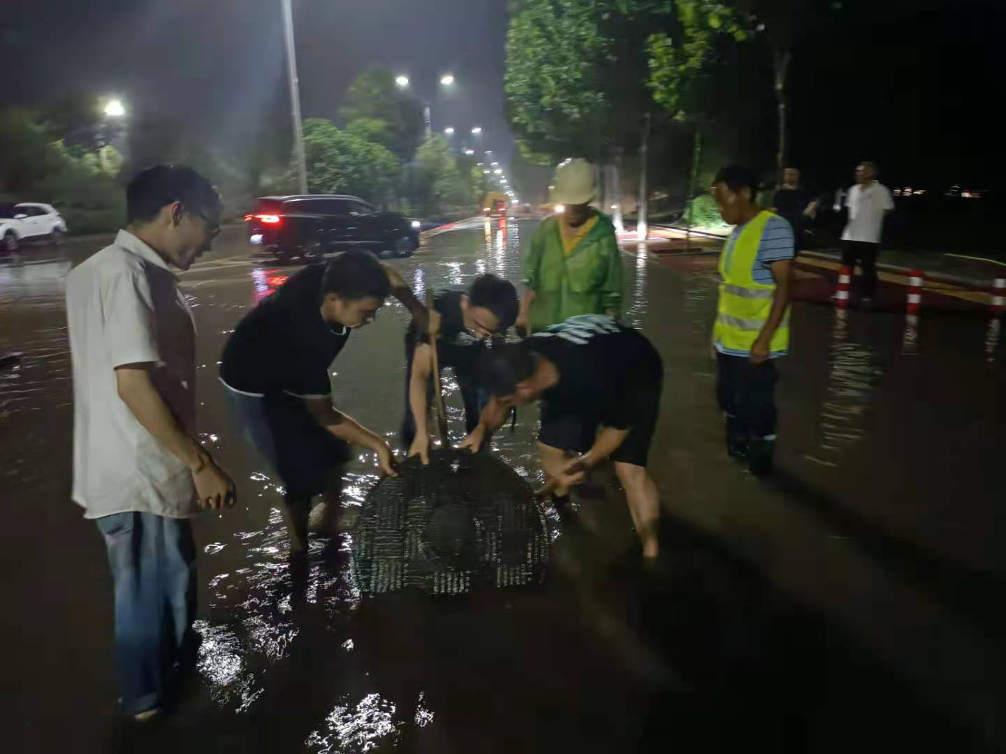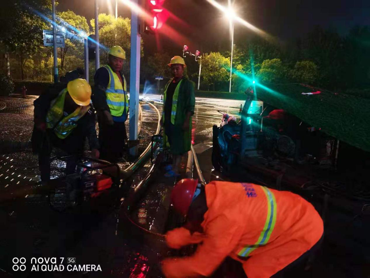 16日下午5時,亳州開始下小雨,天色依舊明亮,降雨量不大,但是我部人員依舊認真對待,在照常進行日常工作的同時提前把防汛設備準備到位。7時,烏云陡增,狂風呼嘯,雨點密集如子彈般落下,項目部派出車輛上路巡查,未發(fā)現(xiàn)嚴重積水。8時,發(fā)現(xiàn)部分小范圍積水,因處理及時,都未造成淹水。9時,劉金定路、月季路、憫農(nóng)路發(fā)現(xiàn)大范圍淹水,項目部下達緊急命令,在亳人員全員出動,各班組帶好工具設備,第一時間趕赴現(xiàn)場,多臺抽水泵同時運轉,人員各司其職,迅速針對可能導致堵塞的原因進行排查,清理雨水篦子,檢查雨水井蓋。發(fā)現(xiàn)問題所在,全速解決問題。凌晨1時,劉金定路與月季路水位均已消退。凌晨3時,憫農(nóng)路水位消退。