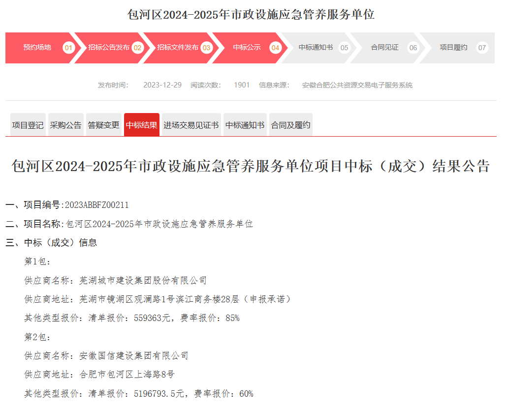 2023年12月29日,我司中標(biāo)合肥市“包河區(qū)2024-2025年市政泵站設(shè)施日常管養(yǎng)”項(xiàng)目與“包河區(qū)2024-2025年市政設(shè)施應(yīng)急管養(yǎng)服務(wù)單位”項(xiàng)目,這兩個(gè)項(xiàng)目的成功中標(biāo),既是我司阿米巴2024年開篇之作,亦是我們兩年間耕耘包河區(qū)市政養(yǎng)護(hù)市場的收獲。換句話說,這既是新起點(diǎn),也是新征程。
