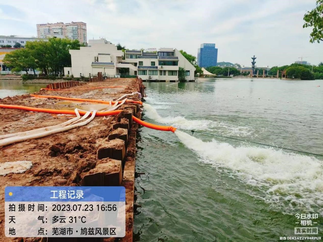 現階段,項目已完成圍堰施工,大鏡湖被分割成東西兩部分,后續(xù)東側維持現狀湖面,西側將繼續(xù)向湖底開挖,以建設水下部分停車場,建設完成后將按照原有水域面積及駁岸岸線恢復大鏡湖原樣。