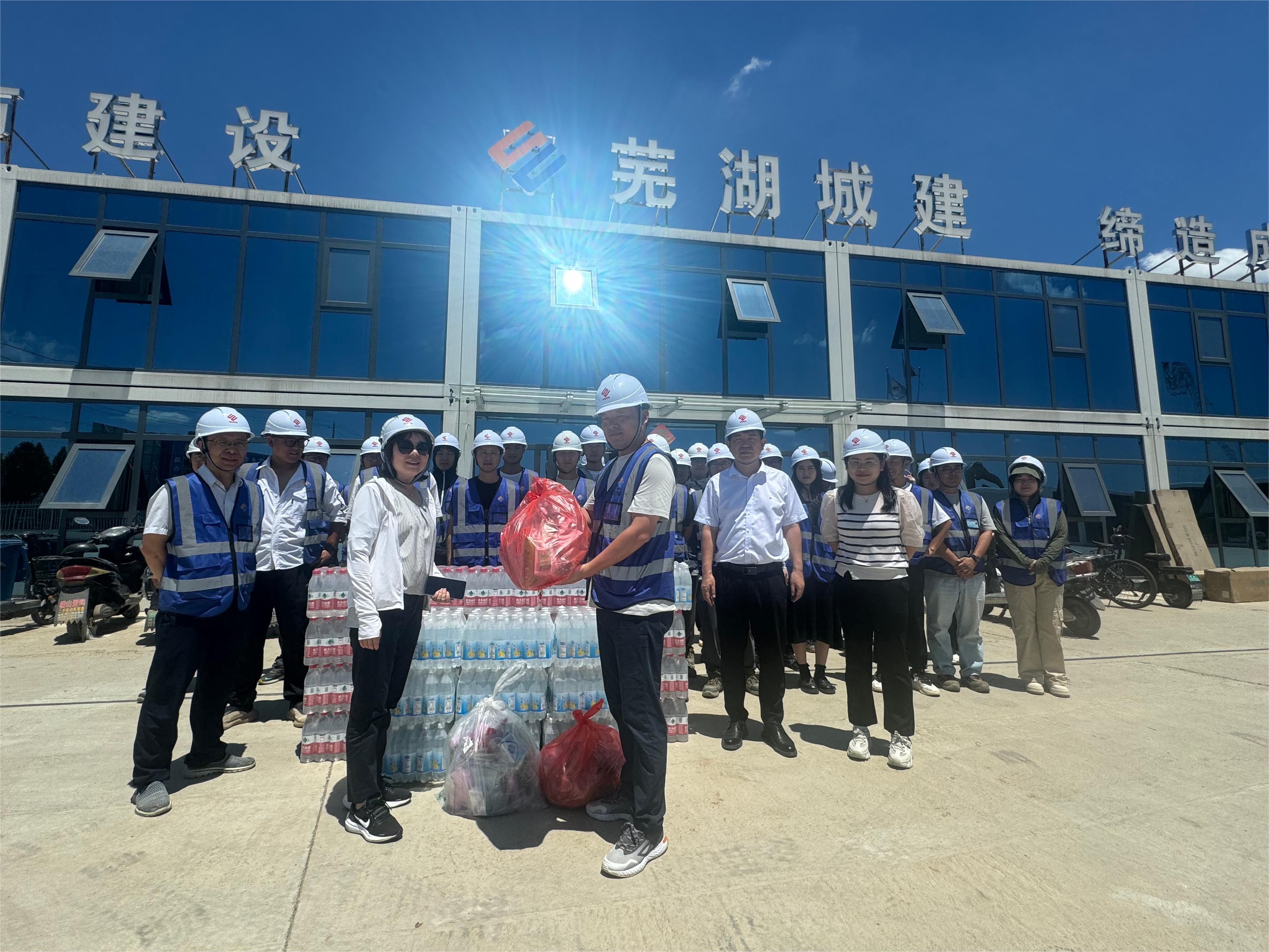 近期,蕪湖市迎來高溫天氣,為切實保障惡劣天氣下一線員工生產安全和身體健康、做好夏季防暑降溫工作,蕪湖城建集團全面啟動2024年高溫慰問活動,安徽中江集團黨委書記、董事長朱志福,黨委委員、副總經理程翎,蕪湖城建黨委委員、副總經理楊磊一行,深入部分重點項目一線,為高溫烈日依然堅守崗位的員工送去清涼與關懷。